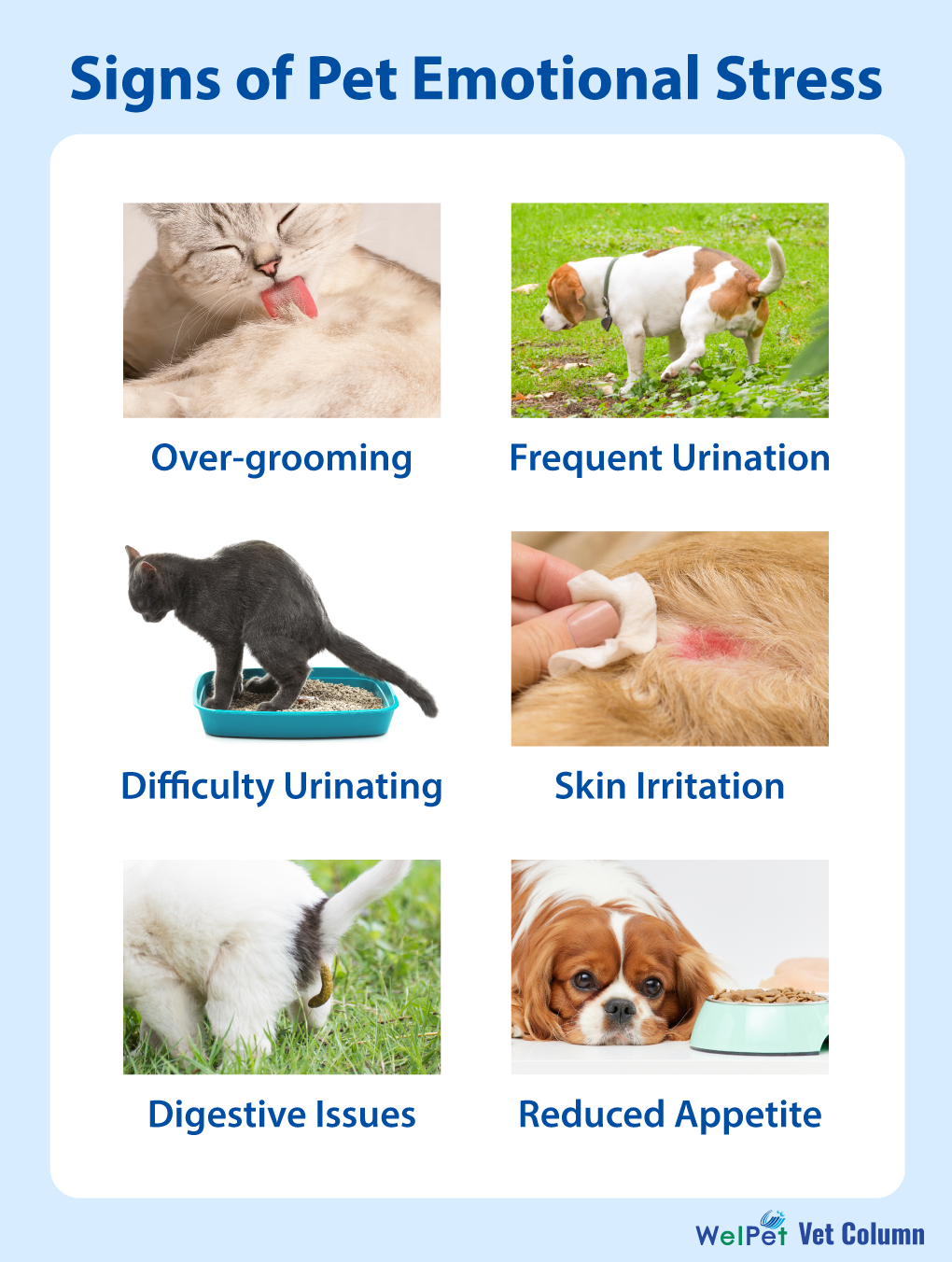 Pet emotional stress often shows up as physical illness. For example, cats with unstable emotions are prone to Feline Idiopathic Cystitis (FIC)—a stress-related bladder condition that causes frequent urination, blood in the urine, and painful urination.