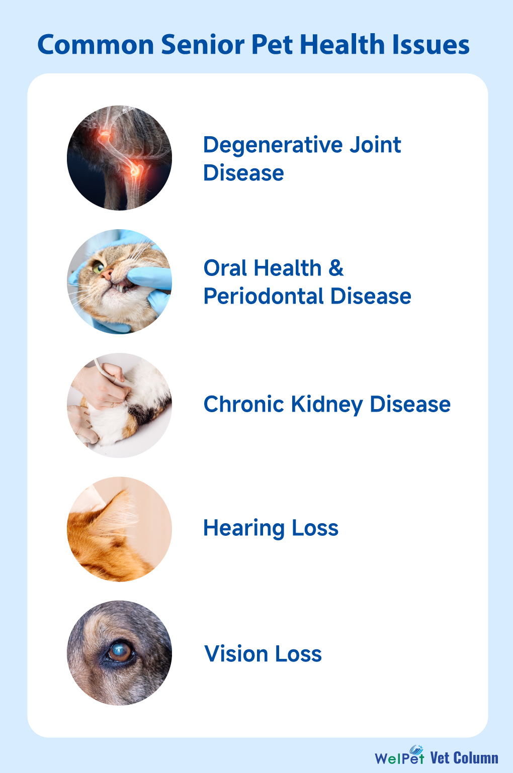 Hearing: Age-related hearing loss is often unavoidable. Prioritize safety during walks and approach pets gently—such as by touching their back—to avoid startling them