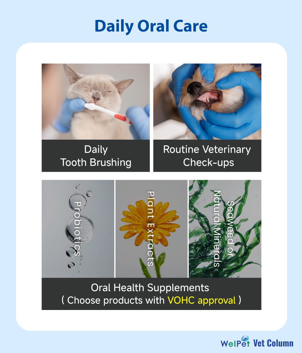 If your pet shows signs such as refusal to eat, difficulty chewing, gum bleeding, or chewing on one side, it may indicate more advanced oral disease. In these cases, a veterinary examination and treatment should be prioritized. Supplements are better suited for early prevention or post-treatment maintenance.