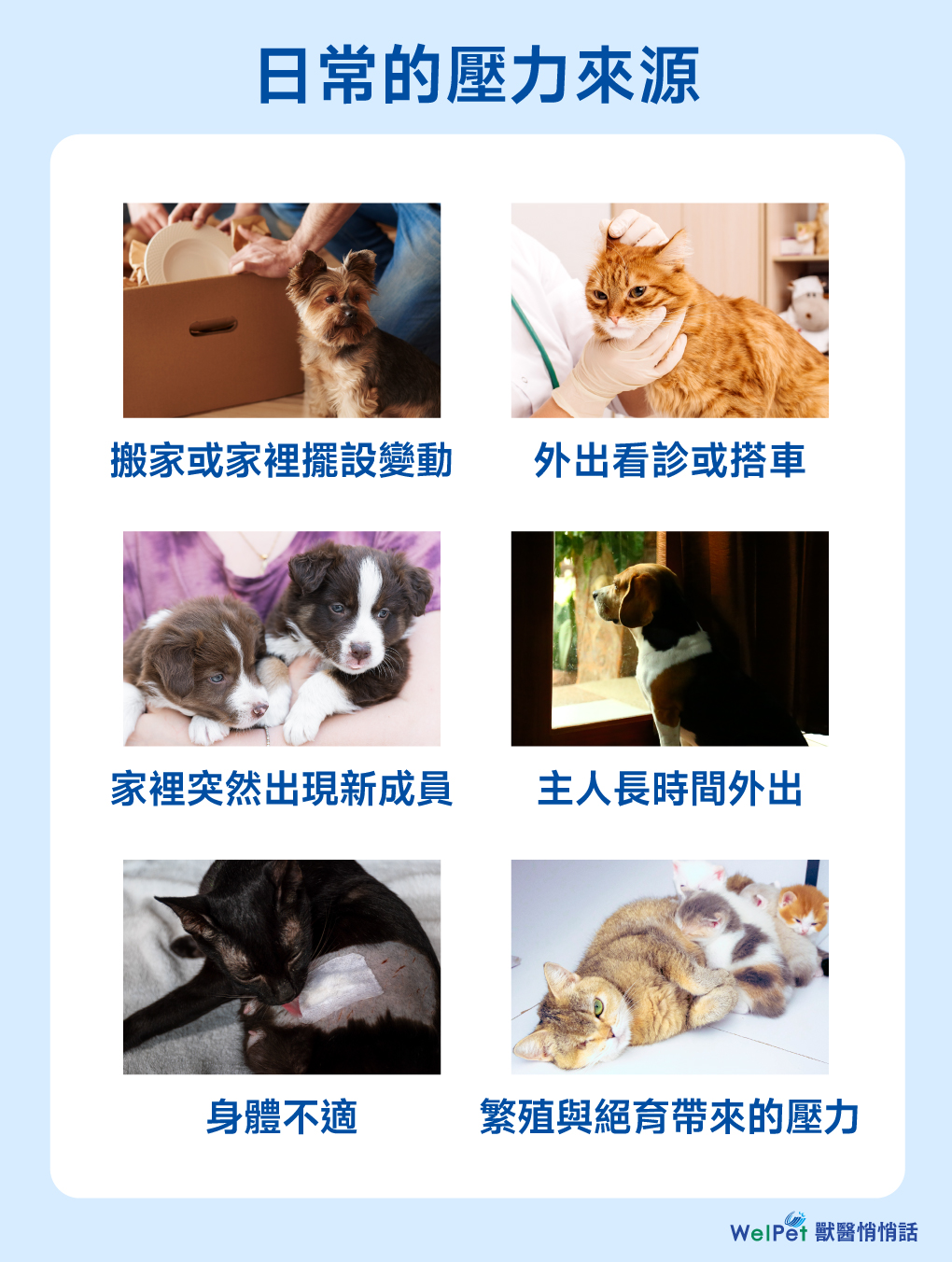 外出看診或搭車:對許多貓狗來說,每次外出都是一場壓力挑戰。