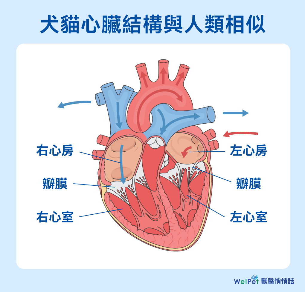 在談論心臟病之前,先來了解貓狗與人類心臟的結構與功能差異。